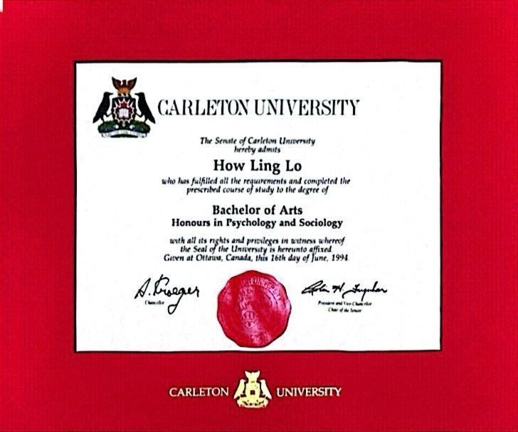 - Bachelor of Arts (Honours) in Psychology & Sociology (Carleton University (Ottawa, Canada))